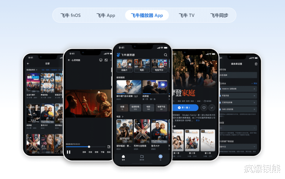 除了PC网页端和手机端APP支持观影外,其还研发了飞牛播放器,飞牛TV客户端及PAD客户端等多种软件,满足用户跨设备观影的使用需求。