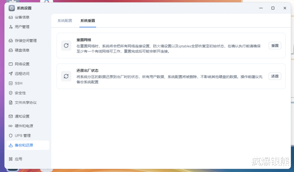 零刻ME mini定制版飞牛OS支持一键重置系统,重置后的系统除了可以恢复原始状态外,还不会影响其他硬盘的数据安全。