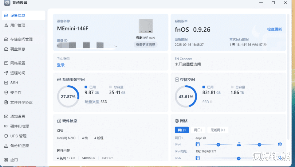 2、稳定性和UI适配度得益于软硬件的专门适配和深度整合,飞牛OS系统在零刻ME mini上的兼容性和稳定性都有所提升,目前体验半个月,没有遇到明显BUG问题。