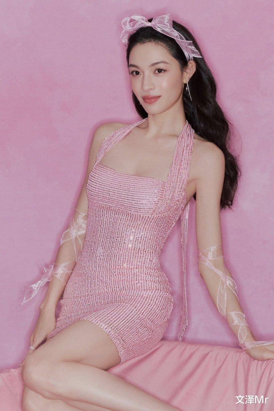 粉色,是很多人眼中甜美的代名词,但在钟楚曦身上,粉色却被演绎出了甜酷交织的别样风情。她身着一袭粉色亮片吊带短裙,亮片元素在光线照射下闪烁着迷人光泽,瞬间抓住眼球。吊带设计大方展露精致锁骨与优美肩线,短裙则将她修长笔直的美腿完美呈现。