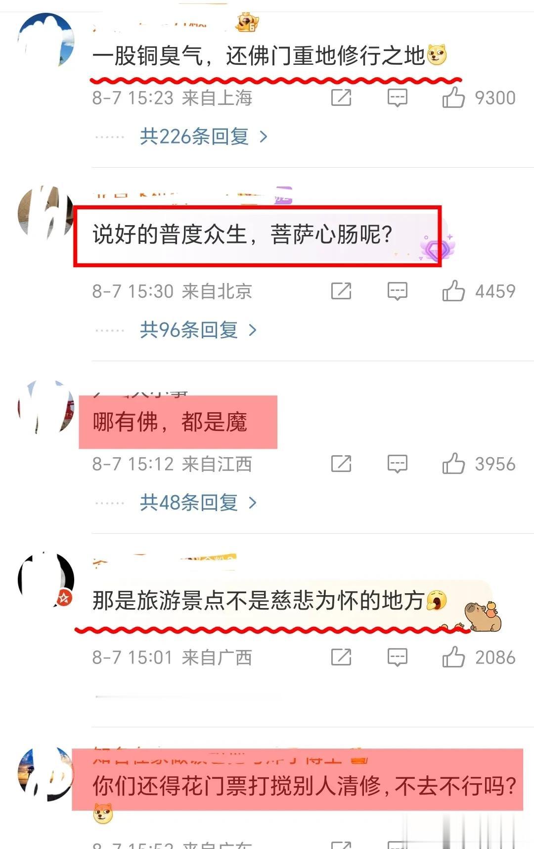 也有网友另类劝诫,你们还得花门票打搅别人的清修,不去不行吗?