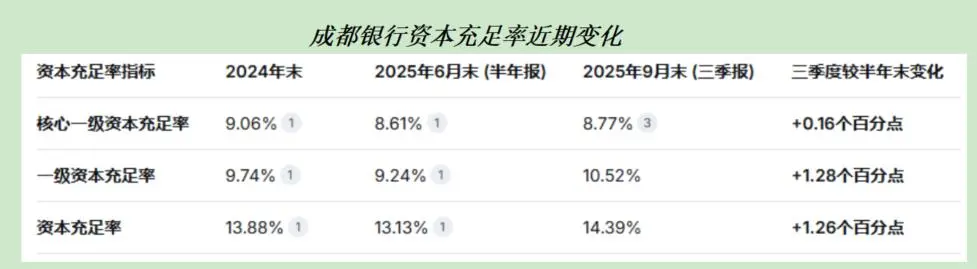 部分研报和分析指出,成都银行的核心一级资本充足率在同类银行中不占优势,确实面临一定的压力。