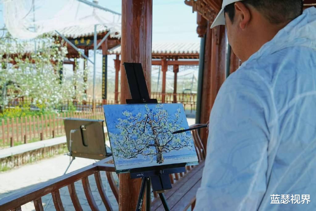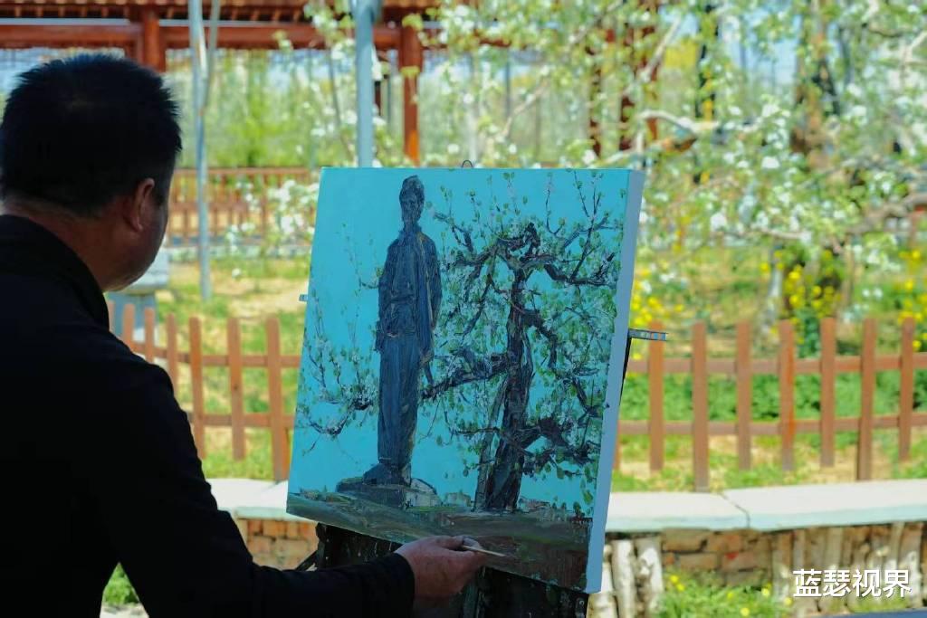 在阿寺村,写生者们以开阔的苹果花林为蓝本,手中的画笔随着目光游走,神情专注地在画板上勾勒着每一根花枝的线条,力求精准呈现出花林错落有致的美感。