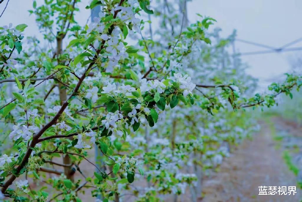 在苹果园区,果花挂满枝头,微风拂过,花枝摇曳,花瓣如雪般飘落,美不胜收的场面吸引了大批游客前来,他们穿梭在花海之中,脸上洋溢着陶醉的笑容,纷纷拿起相机、手机,变换着各种角度,捕捉着苹果花的美丽瞬间。