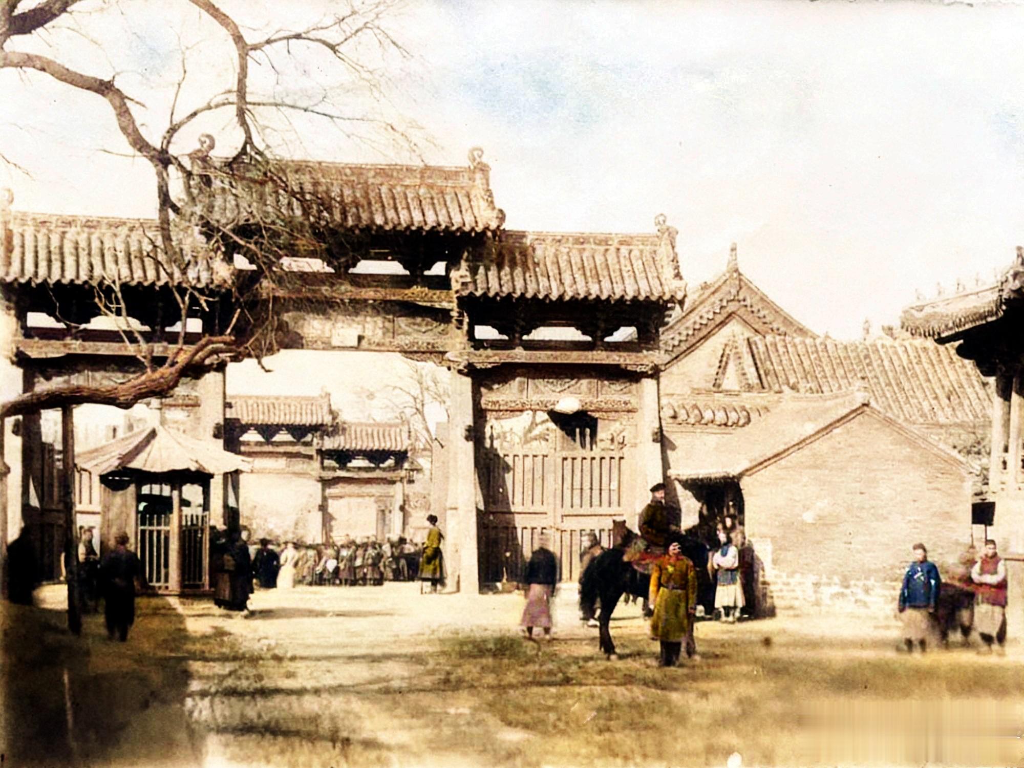 摄影师在外攘门内的四平街上架起照相机,引来一些市民的围观。在镜头远端,, 一名俄国军官站在高大的城门楼下。外攘门又称小西门,是奉天城的主城门之一。