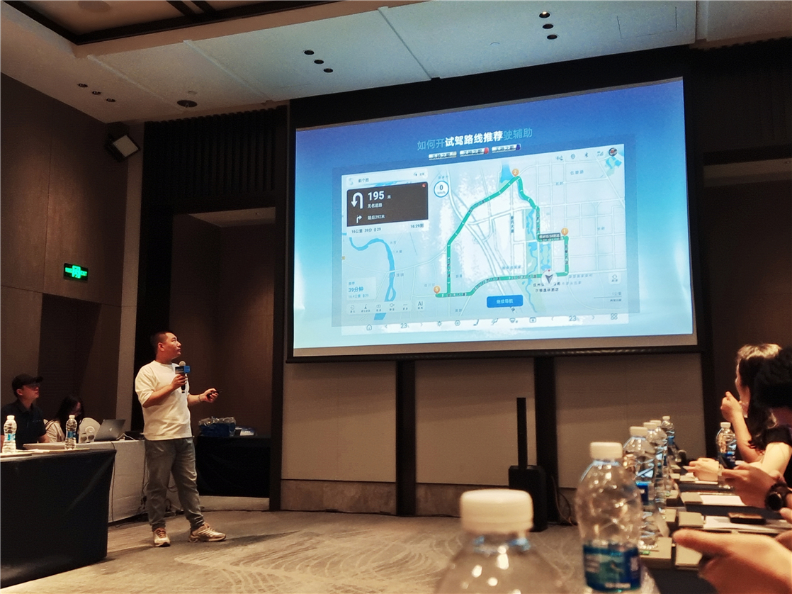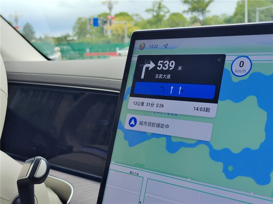 按照推荐的试驾路线设置从酒店发车至返回酒店,城市领航辅助开启之后全程都由车辆来接管,自动分析各种路况并有效采取如加速、刹车、躲避非机动车及行人的操作,综合体验感上很是丝滑。此外在红绿灯路口的倒计时读秒也可以做到几乎0误差。
