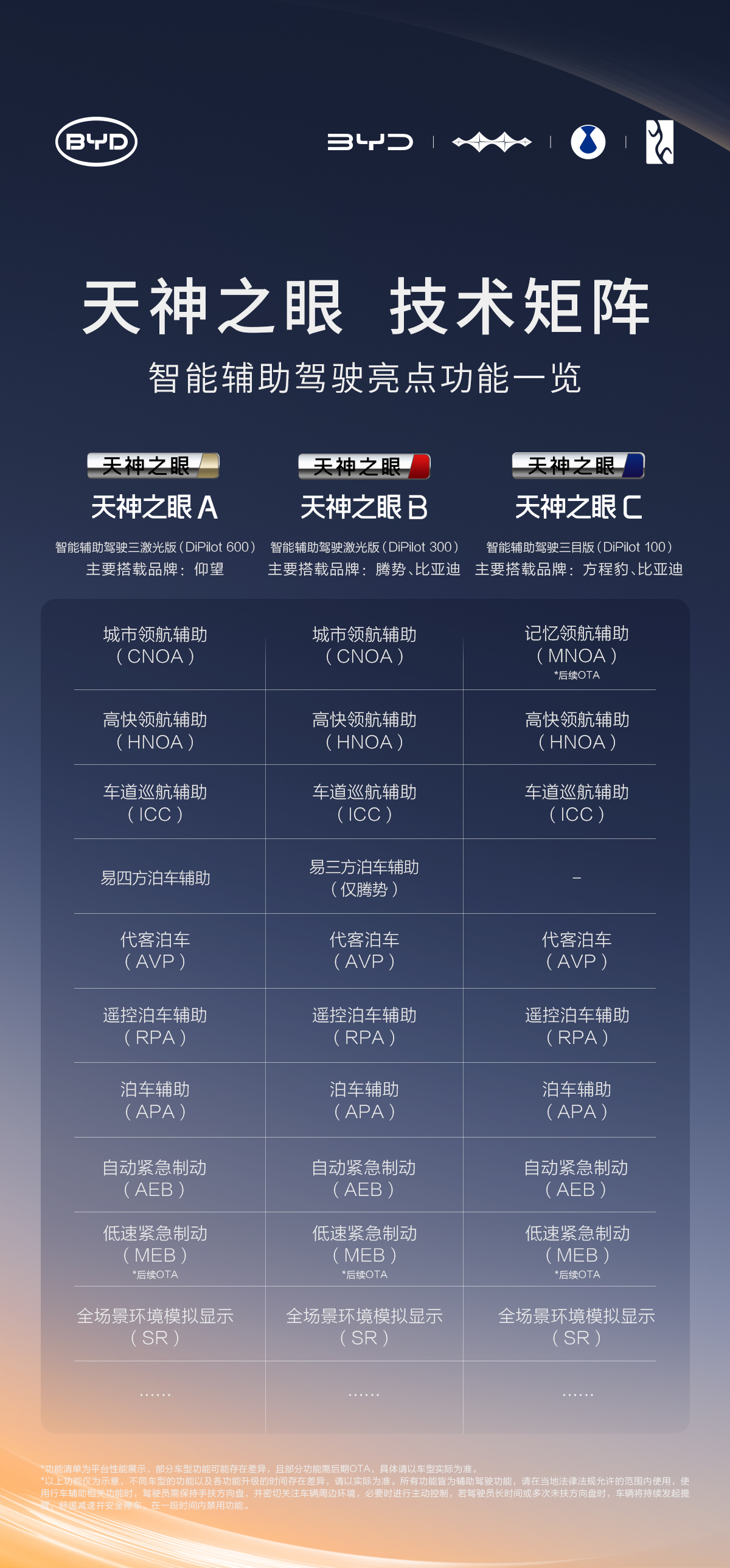 比亚迪的底气与自信,来自数据×研发×规模×安全。其拥有中国最大的智能辅助驾驶车云数据库、全球最大的智驾研发工程师团队、全球最大规模的新能源生产制造体系,天神之眼智驾车型保有量超100万台,技术的可靠性与先进性得到充分论证。在承诺为智能泊车兜底的同时,比亚迪天神之眼迎来史上最大规模的智能辅助驾驶OTA——全面覆盖泊车、行车、安全三大板块十余项功能,涉及天神之眼A/B/C三大平台多款车型。