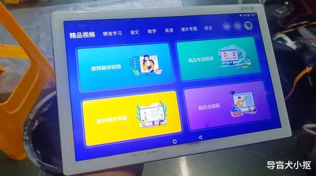 开机使用T916,它的系统是基于安卓8.1定制的,在rec里可以更改启动的桌面apk,厂包里仅有一个定制的学习桌面。学习桌面的效果很像现在的电视桌面,有两个主题栏,横向的是数字显示,一行左右移动,分成课程、内容等类别,点到哪里下面的第二主题栏便自动更新对应内容显示。至于第二个主题栏便是显示的核心,它由几个磁贴组成,大小不一,设置图片和文字区分,里面是对第一主题栏更具体的入口,间距大,点触滑动流畅,打开的动画统一。