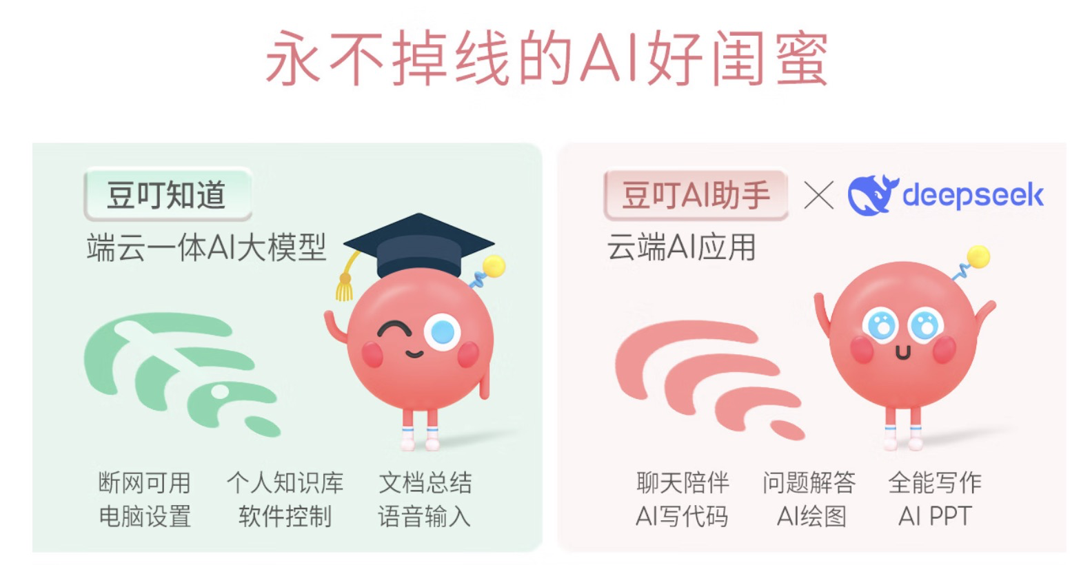 内置本地断网可用的端云一体AI大模型——“豆叮知道”,可使用本地知识库,没有网络也能轻松搞定工作需求。