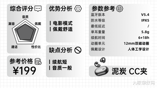 推荐理由:百元价位全能型耳夹式耳机,佩戴。音质、性能都没有明显短板!