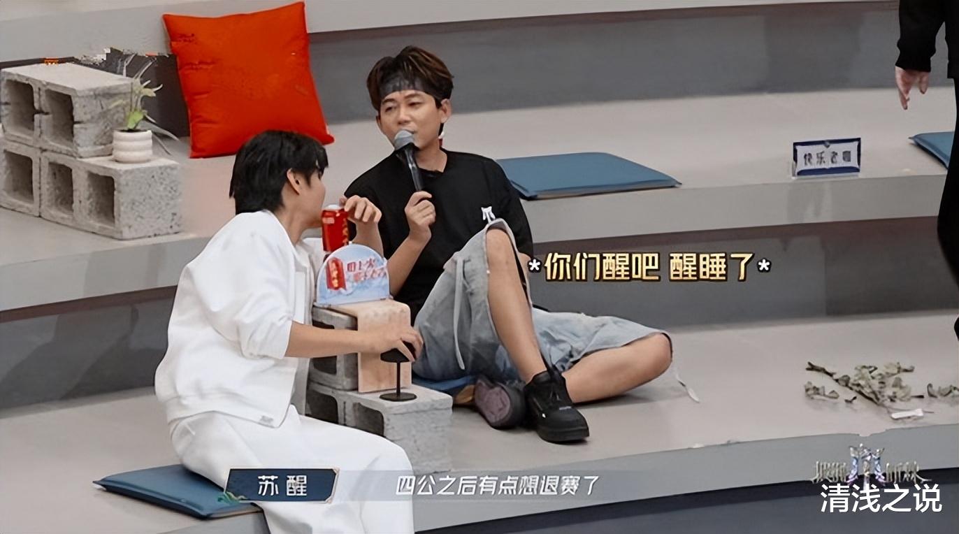 在姐姐提问环节,李晟问早安“作为唯一一个没在Rapper战队的Rapper,你作任何感想?”这问题一出哥哥们都把目光投向苏醒,因为“AKA裂哥”苏醒也是Rapper,但那问题却把他排除在外。综艺感十足的苏醒听到那问题后立马表现出生气模样。苏醒不仅生气,还叫节目组把问那问题的人的网名给他,他查一下。待早安机智地回答完后,苏醒还努力为自己正名——我好伤心,我非常伤心。甚至稍后还说“累了,四公之后有点想退赛了。”
