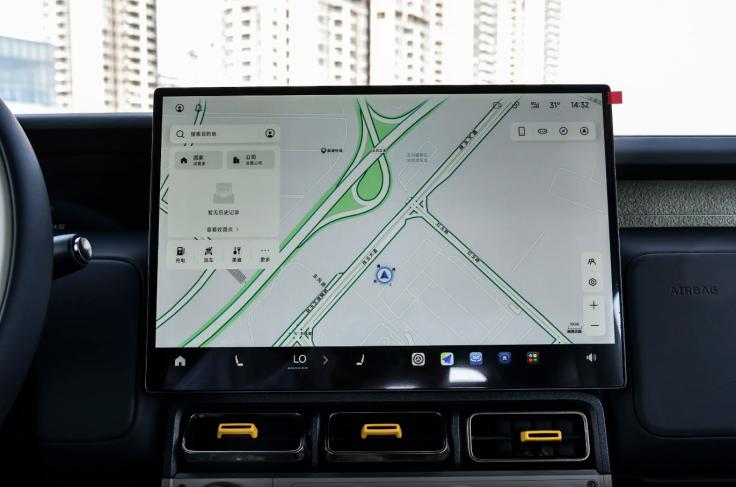 座舱内延续了“硬派简约”的设计风格,目之所及多是横平竖直的线条元素,同时还有圆角矩形的设计元素包含其中,搭配黑、白、绿三种撞色主题,迎合了不同年轻消费群体的审美。在座舱质感方面,座椅采用麂皮软性材质包覆,前排座椅宽大舒适,中控台布局视野开阔,高低双层手搭设计可以让驾驶者根据习惯选择舒适的驾驶姿势。车机部分,全系搭载15.4英寸2.5K中控屏,系统内置高通骁龙8155芯片,操作流畅且支持双区域语音识别控制。仪表盘与中控屏可形成双联屏交互显示,数据易读性不错,且在强光条件下反光不明显。