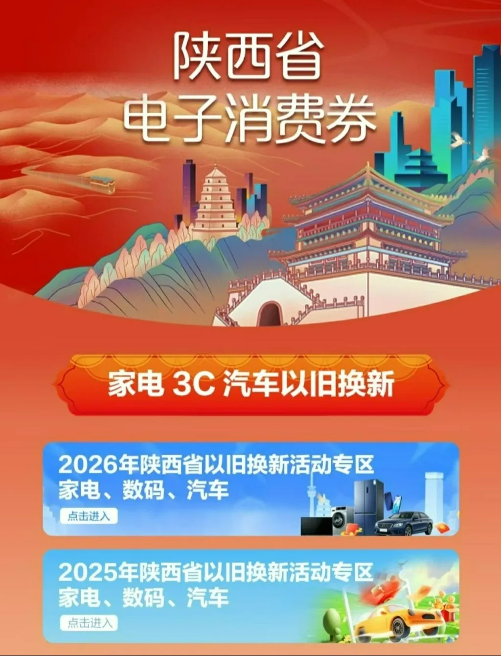 1.领券入口:下载云闪付 APP,完成实名认证并绑定银行卡后,进入 “陕西消费券” 专栏(其他省份相同),选择 “2026 年陕西省以旧换新补贴专区”,再进入 “数码和智能产品购新” 类目。