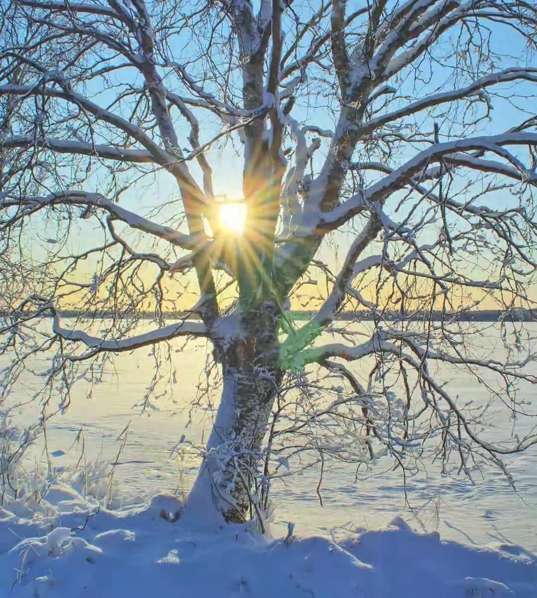 雪落得最盛时,站在黄河岸边,能看见雪花落在结冰的河面上,瞬间便与冰面的霜花融在一起。往日奔腾的河水藏在冰层下,听不见涛声,只偶尔有风吹过,卷起地上的雪沫,在冰面上方织成一层朦胧的白纱。远处的胡杨枝桠上积满了雪,光秃秃的枝干托着蓬松的雪团,像极了缀满棉絮的银珊瑚,站在旷野里,一站就是一整个冬天。