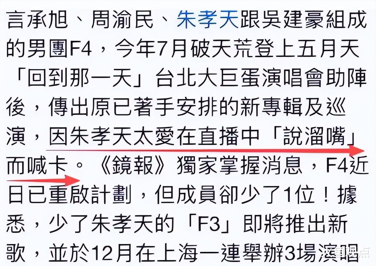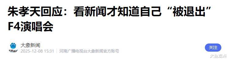 参考资料:【1】朱孝天回应:看新闻才知道自己“被退出”F4演唱会。大象新闻2025-12-08