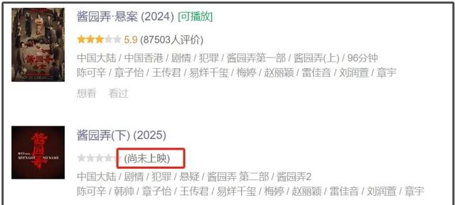 实际上,《酱园弄》之所以口碑票房双扑街,多多少少和分上下两部上映有关。