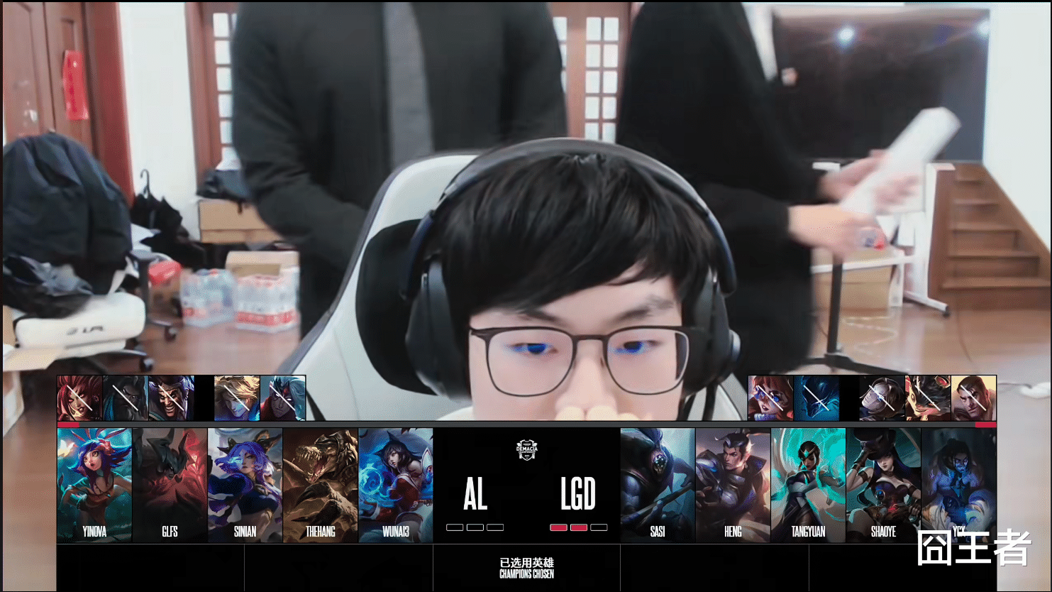 第一局比赛,AL蓝色方,禁用:婕拉、狼母、妮蔻、辛德拉、沙皇,选用:YiNova挖掘机、GLFS奇亚娜、Sinian岩雀、TheHang小火龙、Wunai3牛头;LGD红色方,禁用:杰斯、兰博、发条、月男、布隆,选用:Sasi塞恩、Heng石头人、Tangyuan维克托、Shaoye女枪、YCX日女