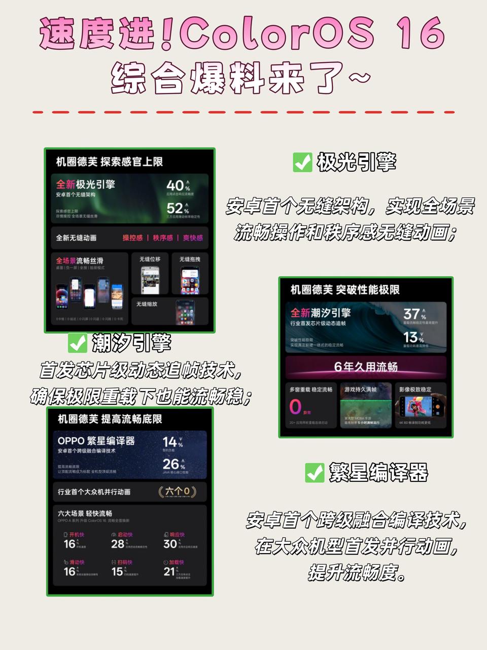 据了解,ColorOS 16采用了OPPO自研的极光引擎、潮汐引擎、繁星编译器这些技术,能从底层彻底提升系统的流畅性。像最近鲁大师评选的2025 Q3手机系统流畅排名,ColorOS就以227.46高分拿下了第一,实力毋庸置疑。