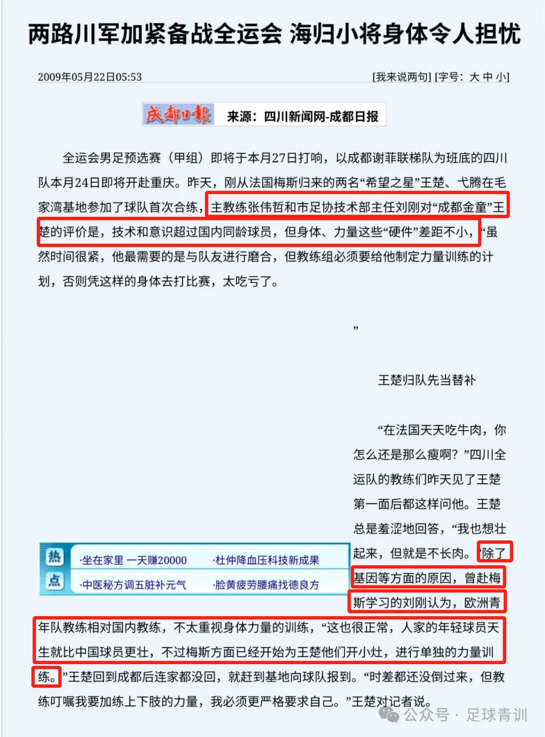 通过两个旧闻报道,分析王楚的足球职业生涯没能达期望高度的原因。