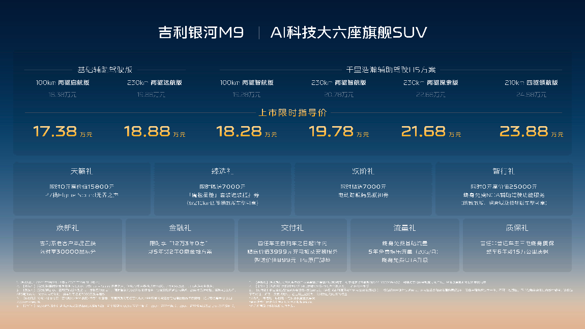 AI体系造AI汽车!限时17.38万起,吉利银河M9上市,开启AI出行新时代