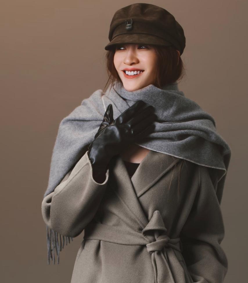 版型设计上,她偏好留有余量的款式。 直筒半身裙或宽松牛仔裤有效隐藏身形小瑕疵,但不过度松垮。 她擅长用腰带优化比例,无论是系带款式的短大衣,还是高腰西裤,都强调出身材线条。 西装外套的肩线挺括但不僵硬,长度刚好到膝盖附近,遮肉而不压个子。