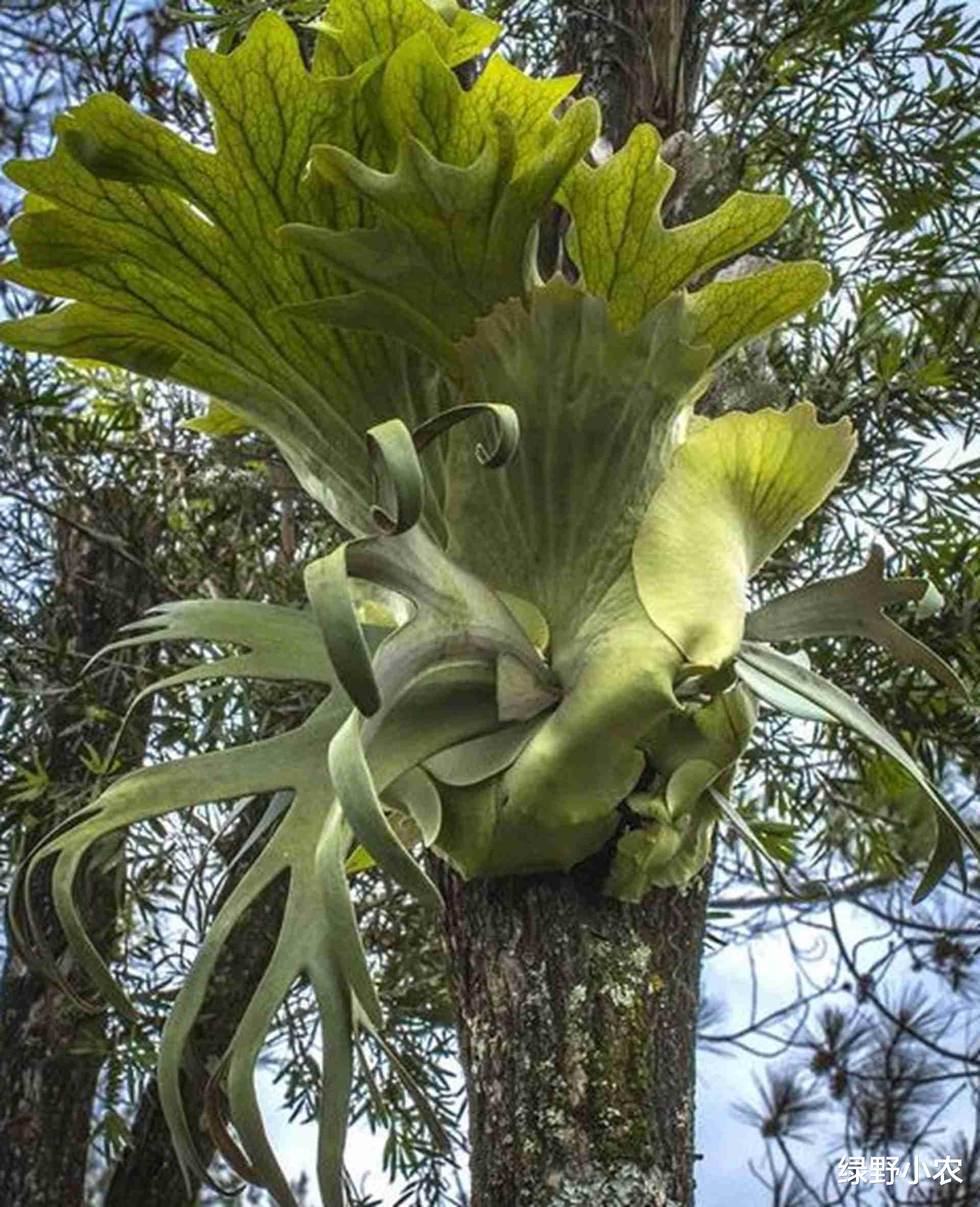我们先来说说鹿角蕨附生方向这个事儿。就像有些网友分享的,他们在家里尝试养鹿角蕨,但是总是搞不清楚应该让它附着在哪里好。其实这和它的原生环境有很大关系。在野外,鹿角蕨通常会寻找合适的大树,比如一些高大乔木的树干,那种有腐朽部分的树干是很理想的选择。因为腐朽的地方比较柔软,便于鹿角蕨扎根,而且那里的环境湿度和通风条件相对较好。在一些山区,比如云南的部分山区,当地的鹿角蕨常常附着在一些桫椤树的树干上。桫椤树生长茂密,能为鹿角蕨提供一定的遮蔽,鹿角蕨的根系能在桫椤树树干的合适部位生长,既不会影响到桫椤树本身的生长,又能稳定地汲取营养。