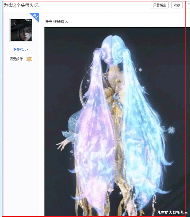 之后就有玩家科普,这顶极其闪耀的头发叫“ 雾落清珑”是逆水寒游戏里知名的“二代配货头”。因为需要在抽奖池里产出,非酋拿满保底才有可能抽出水晶头,不过抽奖池里还有“毕方”火鸟神兽坐骑也藏在里面,一上线人气就非常高。