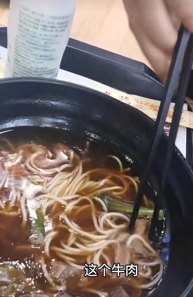 而且这碗牛肉面里面,只是一点点面加上几片牛肉,剩下的就是清汤寡水了,看起来一点油水都没有,还好这碗面是在机场里面卖,如果是在外面卖,估计都要被投诉了,甚至会把客户惹生气,无数网友说,这可能是内蒙古的牛肉吧,不然也不可能这么筋道。