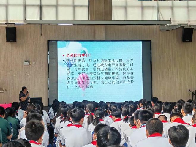 接下来的“开学第一课”是一道汇聚了法治、卫生、心理、安全、垃圾分类与常规教育的“营养大餐”。学校邀请到法治副校长、校医、心理老师、德育主任分别从不同方面进行了宣讲,为学生的身心健康与全面发展保驾护航。这样的设计既帮助学生“收心”,也让学生感到“润心”。