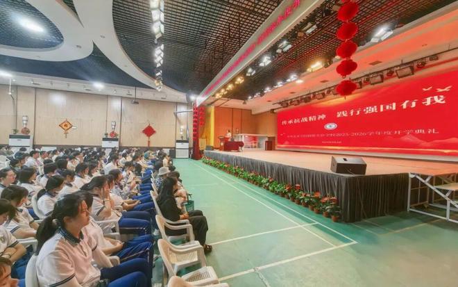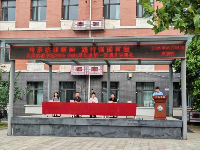 随后,师生及法治副校长、社区领导齐聚操场,召开以“传承抗战精神,践行强国有我”为主题的开学典礼。