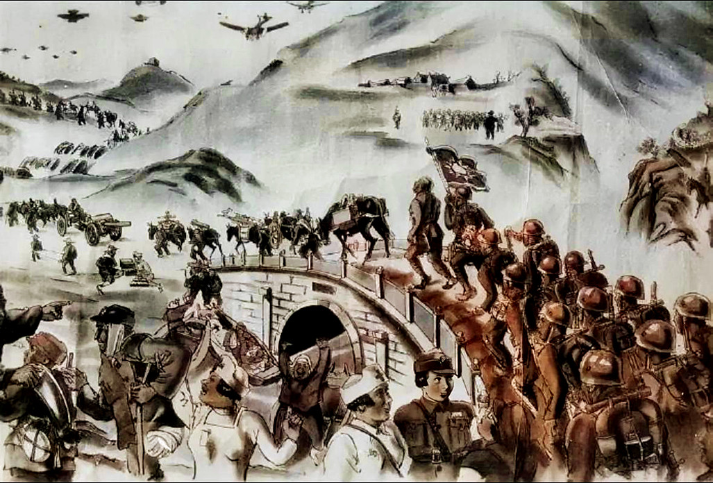 1938年武汉会战期间,武汉作为全国抗战的中心城市,经历了前所未有的破坏与苦难:城市破坏程度;据记载,武汉在1937年8月至1938年10月这14个月的期间里,共遭到日军机空袭72次,投弹3080枚,炸死1651人、伤3147人,毁房3437栋。日军还使用毒气弹4万余发,造成大量伤亡。武汉会战历时4个半月,中方在军事防御布局上动用了兵力超百万人,在长江南北岸构建起了立体的防线。南岸防线依托幕阜山脉设伏,北岸防线利用大别山区复杂地形来阻击日军。富金山战役中,第七十一军与日军血战十余个昼夜,万家岭战役薛岳部队围歼了日军第106师团。