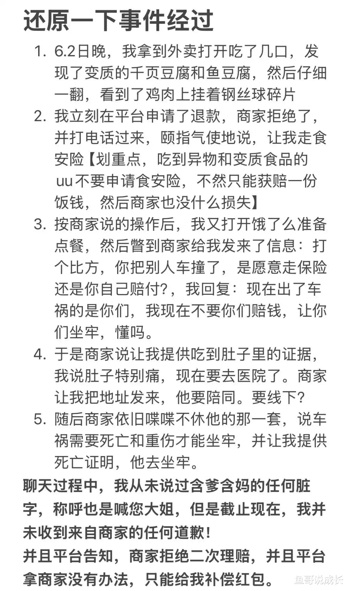 笔者最近看到一个新闻,实在是被气得够呛。武汉一女子点外卖吃出钢丝球丝和变质豆腐,找商家要个退款,结果商家竟然让她提供死亡证明。我当时就想,这是什么神仙逻辑?难道非要出人命了,商家才承认自己有问题?