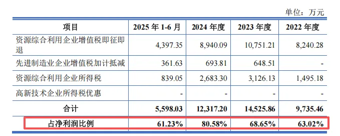 林平发展对税收优惠存在依赖。2022年至2024年,公司享受的税收优惠占净利润的比例从63.02%一路飙升至80.58%,其中资源综合利用企业增值税即征即退的金额较大,分别为8240.28万元、1.08亿元、8940.09万元。