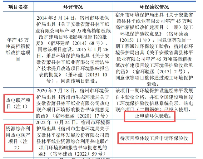 作为高污染排放的造纸企业,林平发展2025年上半年的环保支出达7073.30万元,超过前三年总和,巨幅增长主要源于两个在建项目热电联产二期及资源综合利用项目。然而,问询回复披露,这些项目在尚未通过环保验收的情况下已然投入运营。