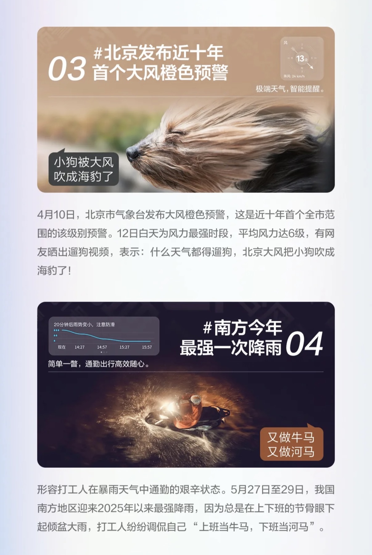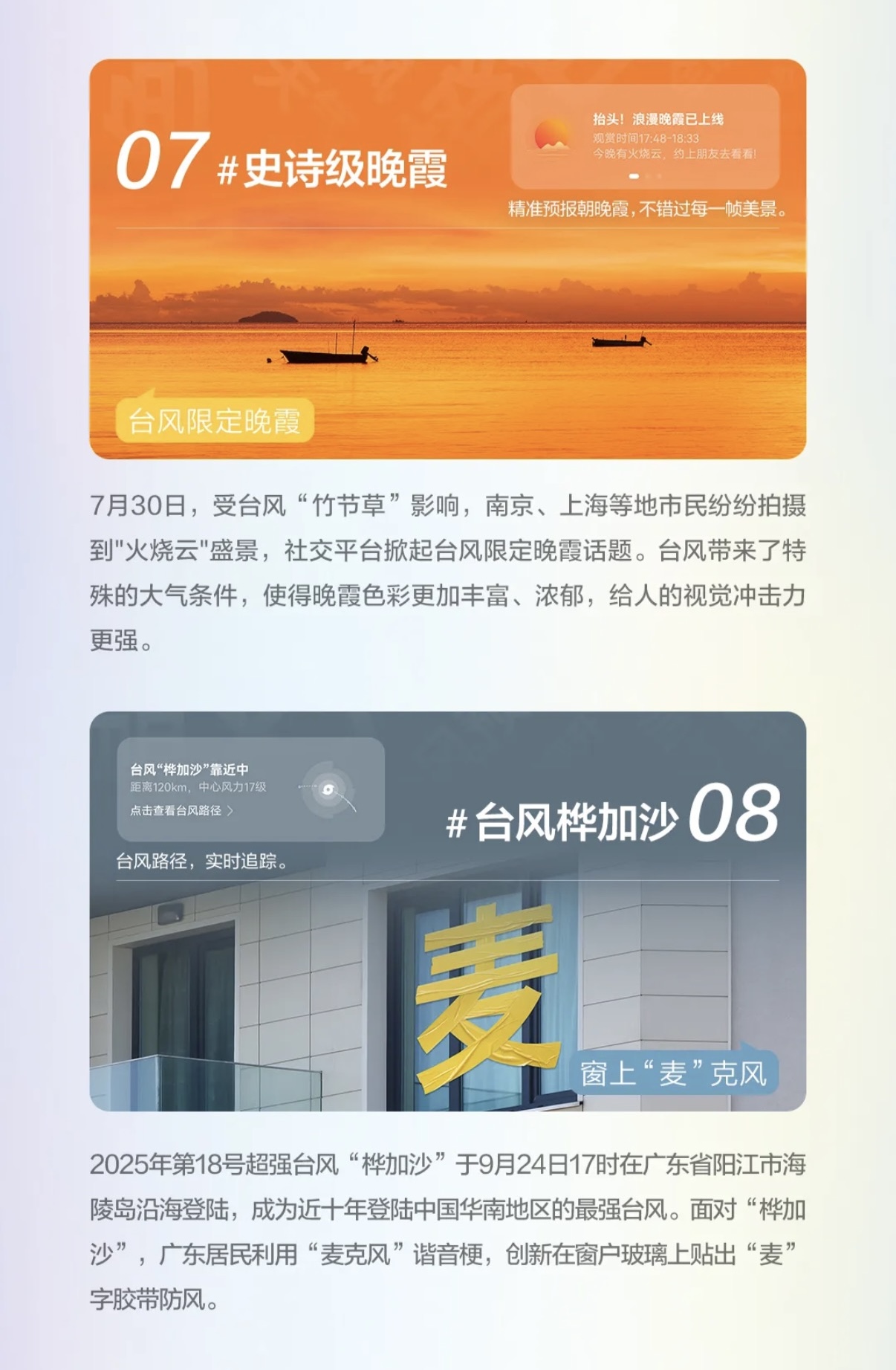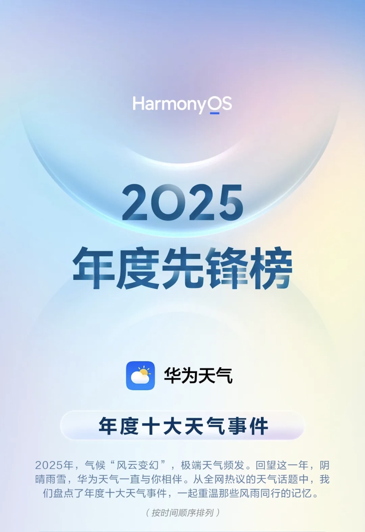 2025年的天气像场即兴演出,但有了华为天气的陪伴,每次"天气大戏"都变得从容。你记忆里最特别的天气故事是什么?快去华为天气看看完整榜单,看看你记忆中的那场天气变化有没有上榜吧