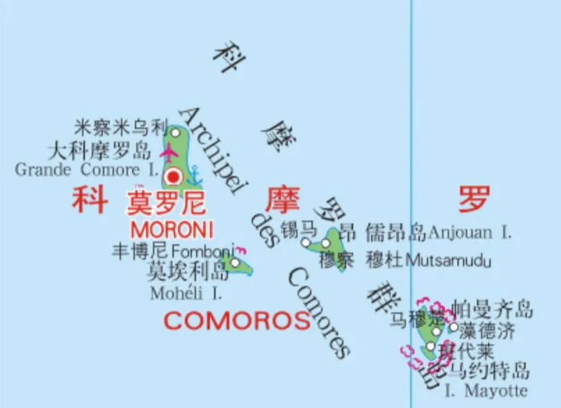 科摩罗是一个位于非洲东南部印度洋之上的群岛国家,面积约2236平方公里,人口约87万。科摩罗是一个小国,在国际上存在感比较低,经济也比较落后,人均GDP约1500美元。科摩罗对我国一直非常友好,疫情期间曾给我国捐款一百欧元。