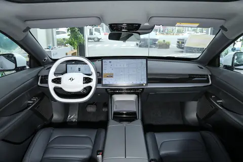 再说说内饰和材质,家用车的内饰需兼顾美观与实用。零跑 C01 2024 款增程式 216 尊享版内饰提供礁灰 + 天青、礁灰 + 驼绒棕两种配色,蛋蛋所选的礁灰 + 驼绒棕兼具温馨感与耐脏性,座椅采用皮质面料,触感柔软。中控搭载 14.6 英寸 2.5K 高清悬浮屏(分辨率 2560×1440),支持触屏操作与空调语音控制。方向盘采用双辐设计,哑光黑按键不易留指纹,握感扎实。东风奕派 eπ007 2024 款增程 200 Pro 版配备 15.6 英寸中控屏(分辨率 1080P),中控台采用软质材料,座椅为仿皮材质,两车在内饰材质与屏幕配置上呈现不同风格。