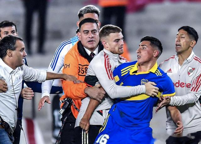 论足坛德比的火爆程度,阿根廷德比绝对不输任何人。北京时间今天上午结束的一场阿根廷德比,河床主场1-0击败博卡青年,继续领跑积分榜。本场比赛,河床在补时阶段获得点球并完成绝杀,随后双方大打出手,主裁判一共出示了7张红牌,并将博卡青年主帅阿尔米隆罚下,才平息了冲突。