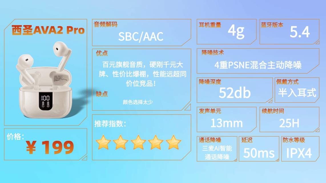 品牌1、西圣AVA2 Pro蓝牙耳机