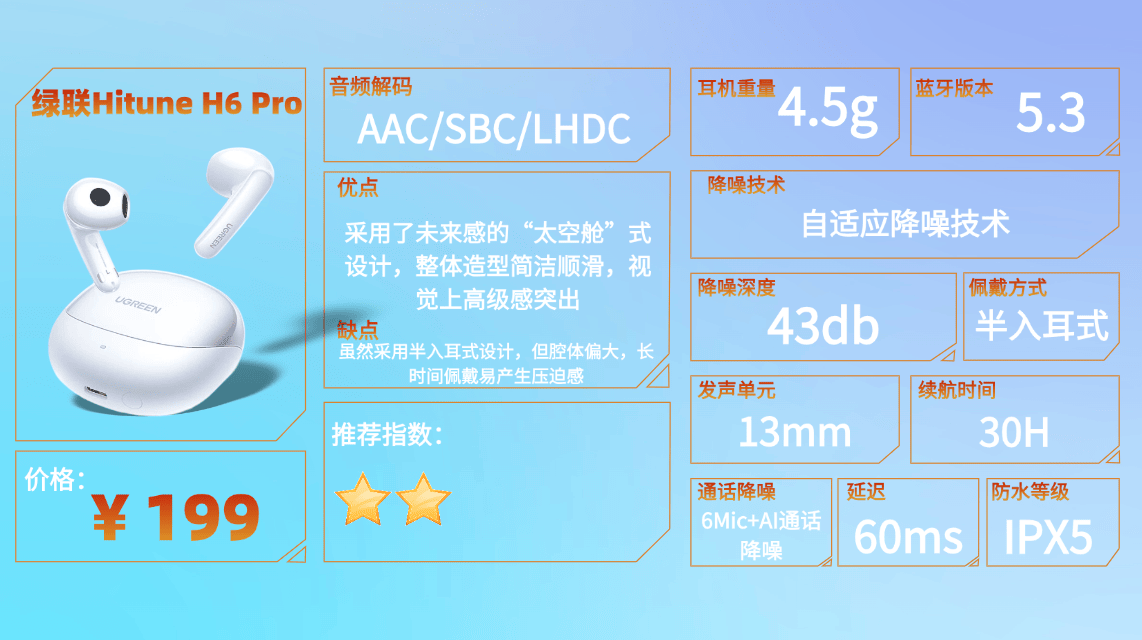 品牌6、绿 联H itune H6 Pro蓝牙耳机