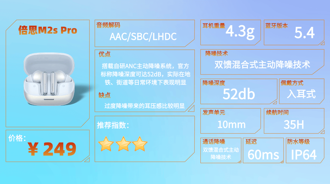 品牌5、倍 思M 2s Pro蓝牙耳机