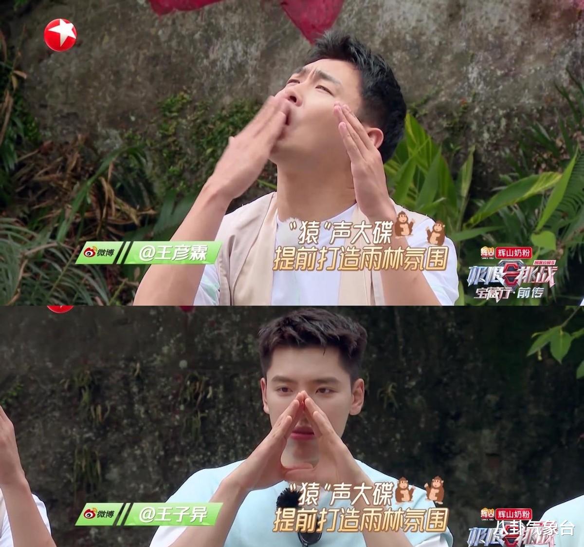 口技大师王彦霖和王子异也迫不及待地模仿起了动物的叫声,“猿声大碟”直接将热带雨林的氛围拉满,光听声音就感觉已经置身其中了。