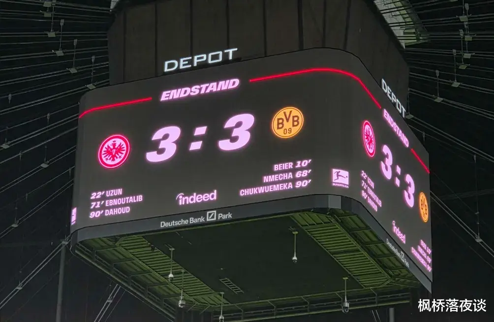 有人说,足球的魅力就在于它的不确定性。这场3-3的对决,完美诠释了这一点。它有多特蒙德两度领先的强势,也有法兰克福顽强追平的坚韧;有补时反超的狂喜,也有被绝平的失落;有宿命般的遗憾,也有新生的希望。对于法兰克福而言,这1分或许无法让他们在积分榜上实现质的飞跃,但新援的崛起、球队的拼搏,已然为他们驱散了些许阴霾。而对于所有球迷来说,这场比赛让我们明白,为什么会为足球彻夜不眠——因为在这片绿茵场上,总有不放弃的拼搏,有不期而遇的惊喜,更有直抵人心的情感共鸣。