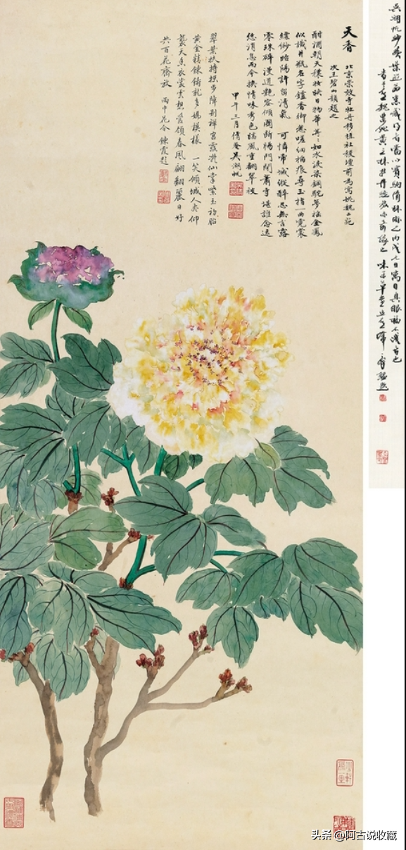 吴湖帆 甲午(1954年)作 天香 立轴 尺寸100.5×43cm 成交价RMB 2,070,000 中国嘉德2021秋季拍卖会