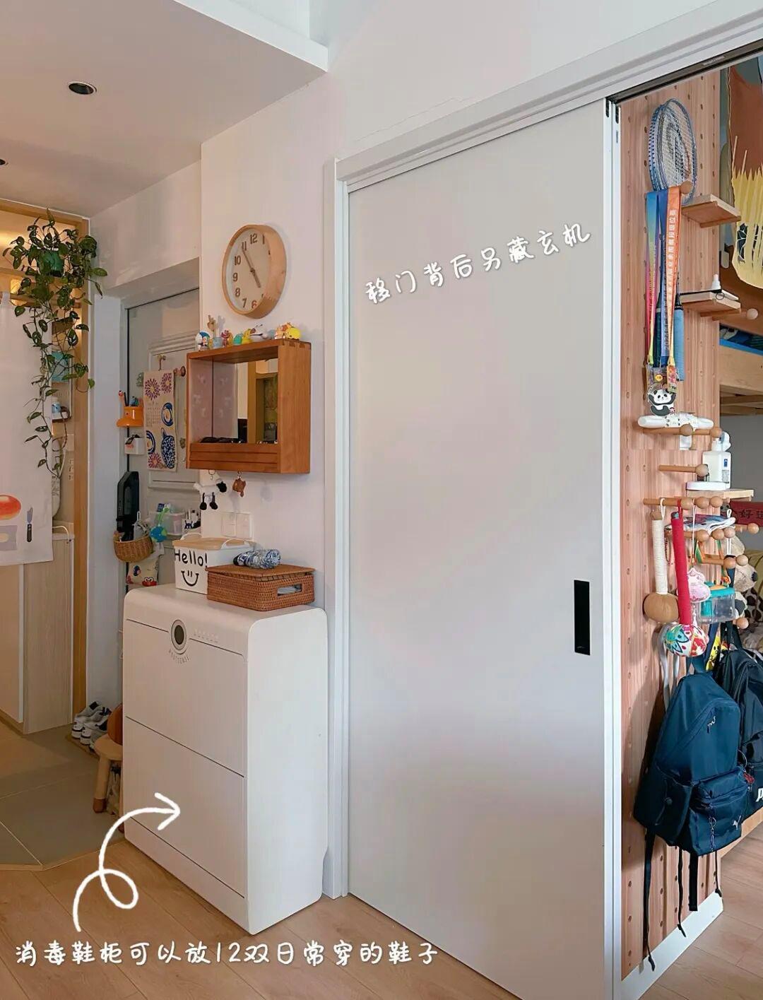 当然,玄关最特别的一个地方,就是博主在鞋架旁做了一个隐形800库,它和儿童房门融为一体;