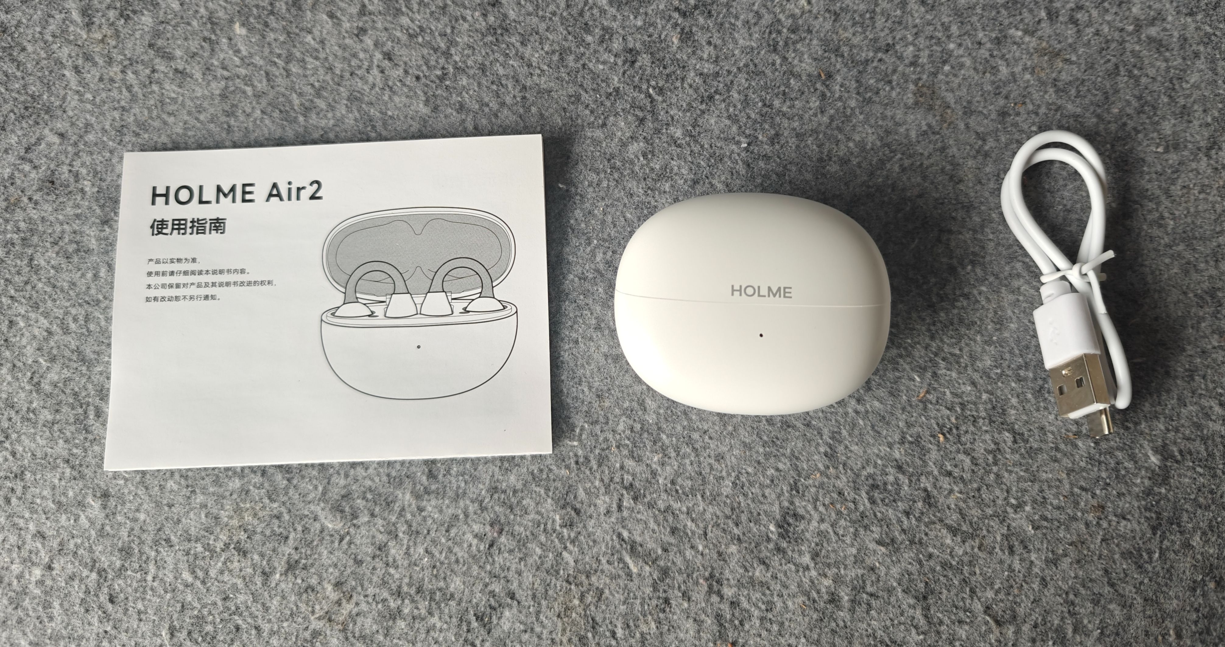 拿到虹觅HOLME Air2小云夹的那一刻,它简约的包装设计就给我留下了不错的第一印象。没有花里胡哨的装饰,正面清晰醒目的品牌logo,让人一眼就能认出。拿在手里,能感受到包装盒的质感,这让我对里面的耳机更加期待了。打开包装,里面的配件一目了然,耳机、说明书和数据线整齐地摆放着,没有多余的繁杂设计,这种简洁实用的风格很合我心意。
