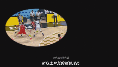 每当他接球后,土耳其的强侧队友,就会暂时放掉对位人,完全张开双臂,封堵字母向上线的运球空间。要知道,常规的防守原则,强侧是尽量不参与协防的,因为短传速度快,很容易漏掉同侧的三分,但土耳其就是赌字母的队友不行。