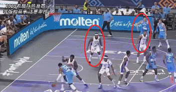 与此同时,中锋申京,也会完全放掉自己的对位人,就杵在篮底下,这点利用了FIBA没有防守三秒的规则。奥斯马尼负责吸收字母哥的对抗,申京则在身后全力起跳封盖。