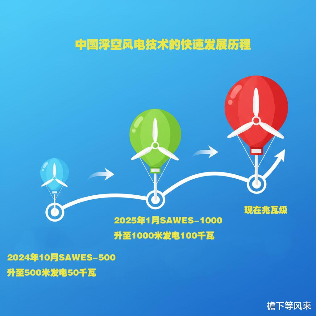 从2024年10月SAWES-500升至500米发电50千瓦,到2025年1月SAWES-1000升至1000米发电100千瓦,再到现在兆瓦级系统成功试飞,中国在这个全新赛道已经建立了绝对的技术领先。
