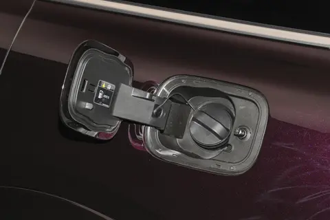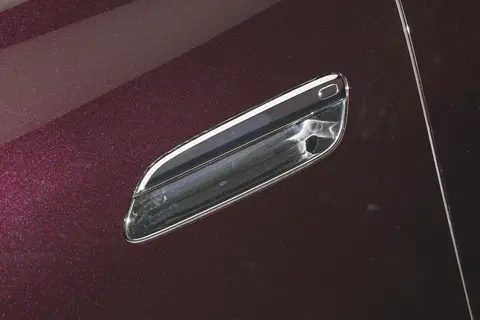 走到车侧,更能感受到设计师对细节的打磨。门把手内嵌 24 颗 LED 灯珠,夜晚靠近车辆时,点阵微光会渐次亮起,像 “星河流转” 般营造出浪漫的迎宾氛围。半隐藏式门把手还与电动侧踏板联动,车主靠近时踏板自动弹出,配合地面投射的光毯,上下车的尊贵感直接拉满,让每一次出行都充满仪式感。